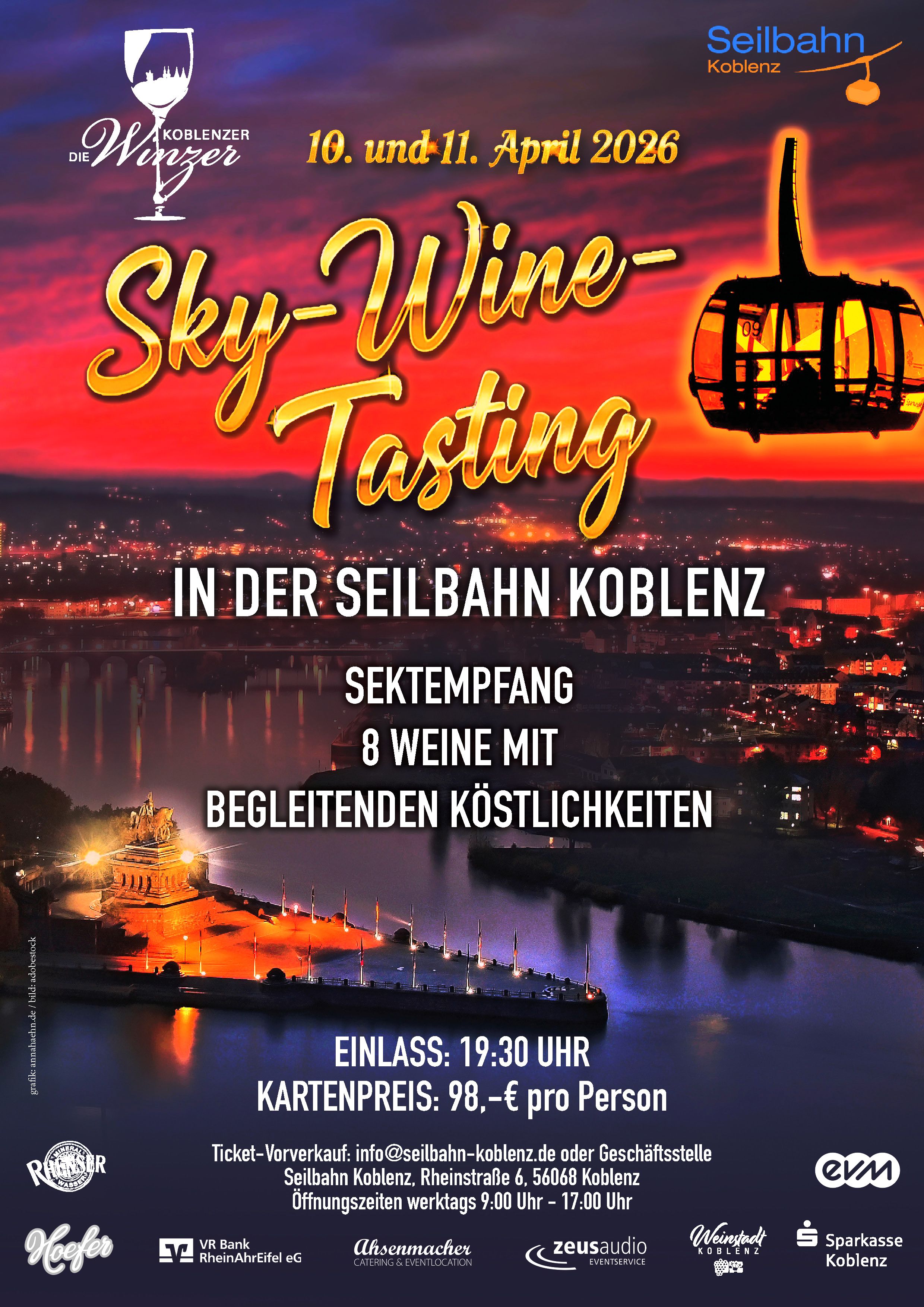 Jetzt schnell sein: Die Bestellung der Tickets per E-Mail mit Wunschtermin und Rechnungsadresse an info@seilbahn-koblenz.de